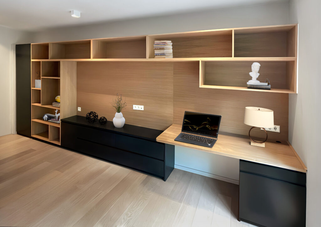 Un mur vide dans votre salon, un espace uniquement pour votre télévision, un coin inutilisé sous un escalier ou un bureau à structurer ? Nous créons votre bibliothèque sur mesure au millimètre près pour qu’elle s’intègre parfaitement à votre espace.